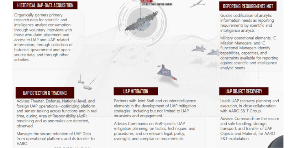 “UAP Mitigation : Partners with Joint Staff and counterintelligence elements in the development of UAP mitigation strategies - including but not limited to UAP incursions and engagement.”