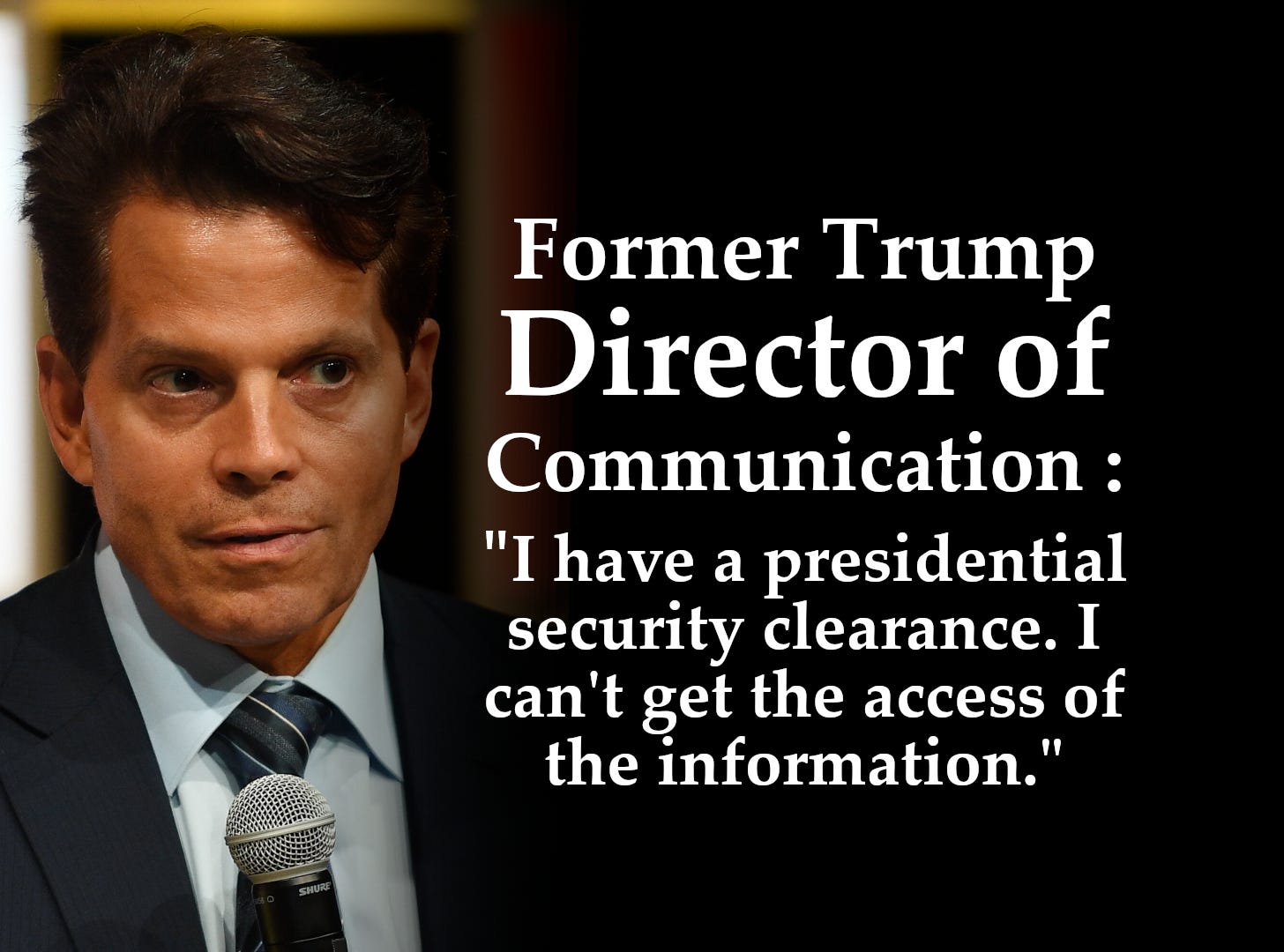 Although the White House's communications director is a senior official who can have Top Secret clearance, it is doubtful that he would have the same access as the President of the United States. Trump himself stated that he was briefed on UFOs, and met with military witnesses.